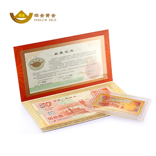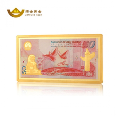 • 商品名稱:招金黃金 建國50周年紀念金鈔50元