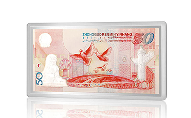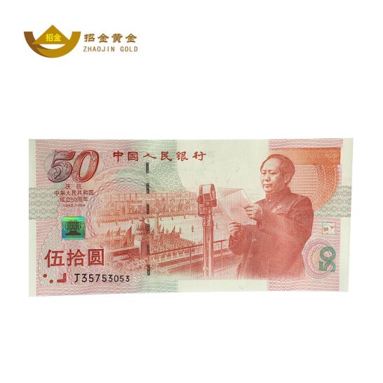 招金黃金 建國(guó)50周年紀(jì)念銀鑲金鈔50元